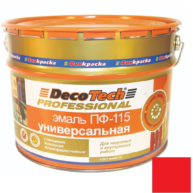 Купить Эмаль универсальная DecoTech Professional ПФ-115 ярко-красная под RAL3020 20 кг по лучшей цене с доставкой - интернет магазин №1 в России