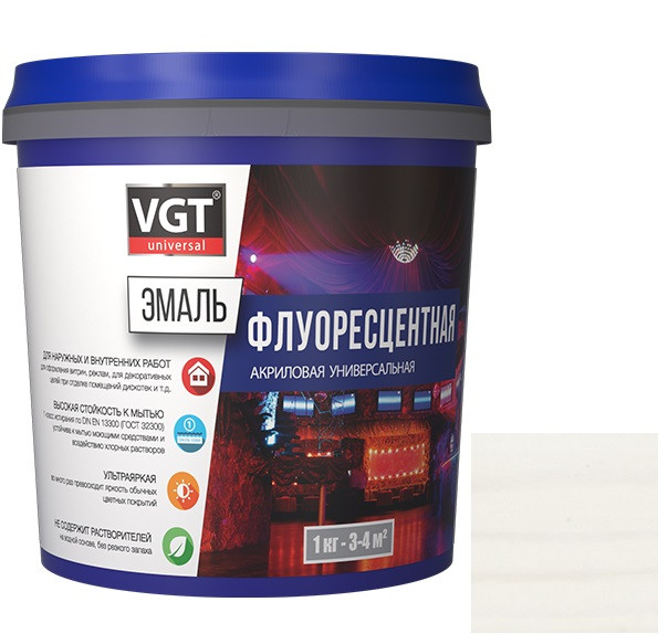 Купить Эмаль универсальная флуоресцентная VGT белая 1 кг по лучшей цене с доставкой - интернет магазин №1 в России