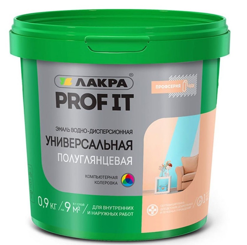 Купить Эмаль универсальная Лакра Prof it ВД База А полуглянцевая 0,9 кг по лучшей цене с доставкой - интернет магазин №1 в России