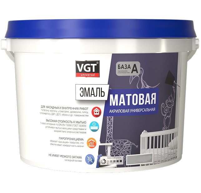 Купить Эмаль универсальная VGT База А матовая супербелая 0,8 кг по лучшей цене с доставкой - интернет магазин №1 в России