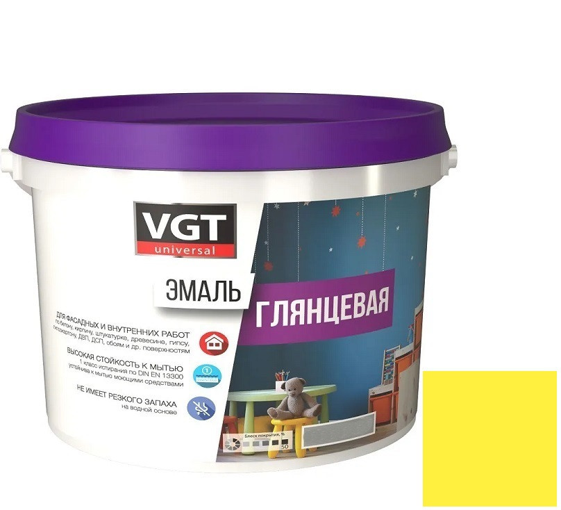 Купить Эмаль универсальная VGT глянцевая Ral 1018 желтая 1 кг по лучшей цене с доставкой - интернет магазин №1 в России
