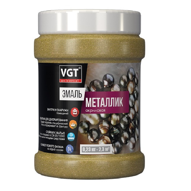 Купить Эмаль универсальная VGT металлик золото 0,23 кг по лучшей цене с доставкой - интернет магазин №1 в России