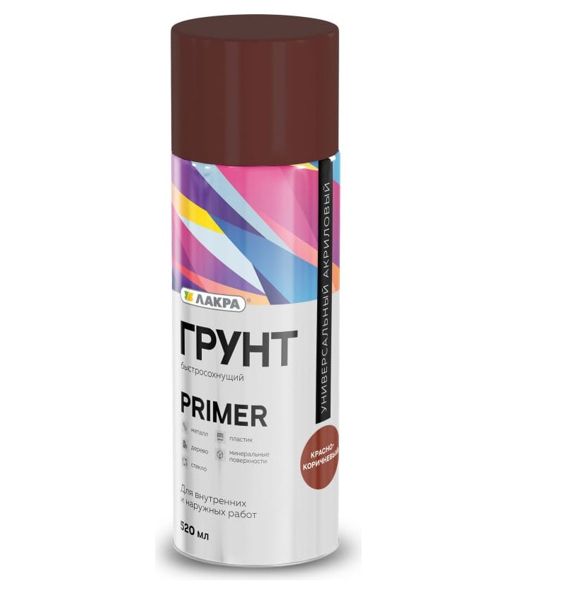 Купить Грунт аэрозольный Лакра Primer универсальный красно-коричневый 142 520 мл по лучшей цене с доставкой - интернет магазин №1 в России