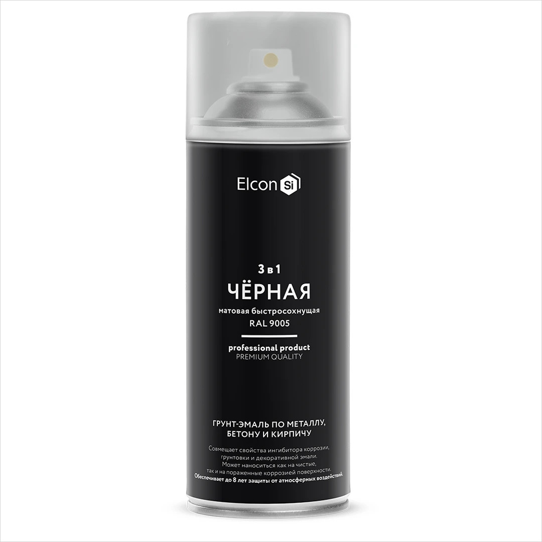 Купить Грунт-эмаль аэрозоль по ржавчине Elcon 3 в 1 матовая чёрная RAL 9005 520 мл по лучшей цене с доставкой - интернет магазин №1 в России