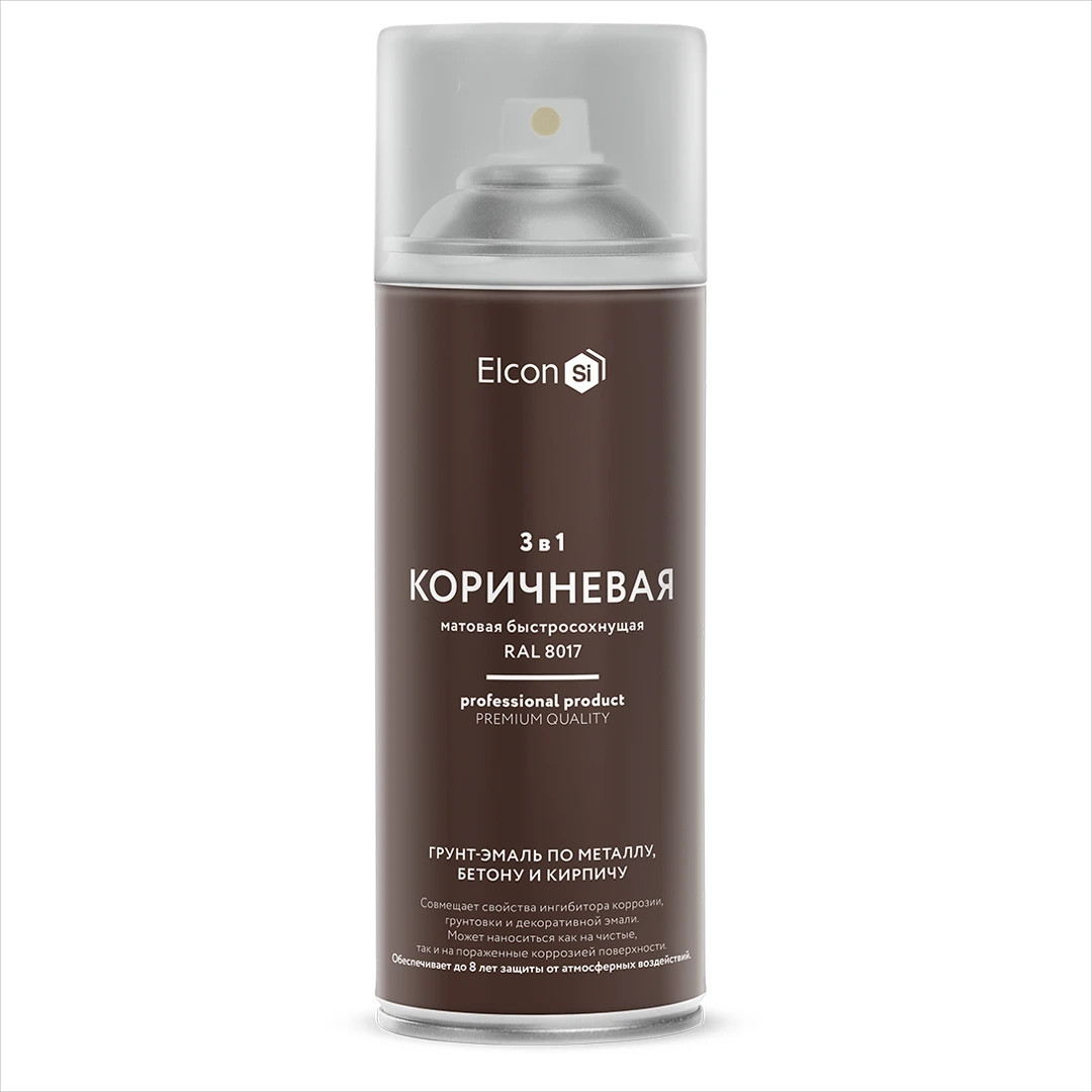 Грунт-эмаль аэрозоль по ржавчине Elcon 3 в 1 матовая коричневая RAL 8017 520 мл