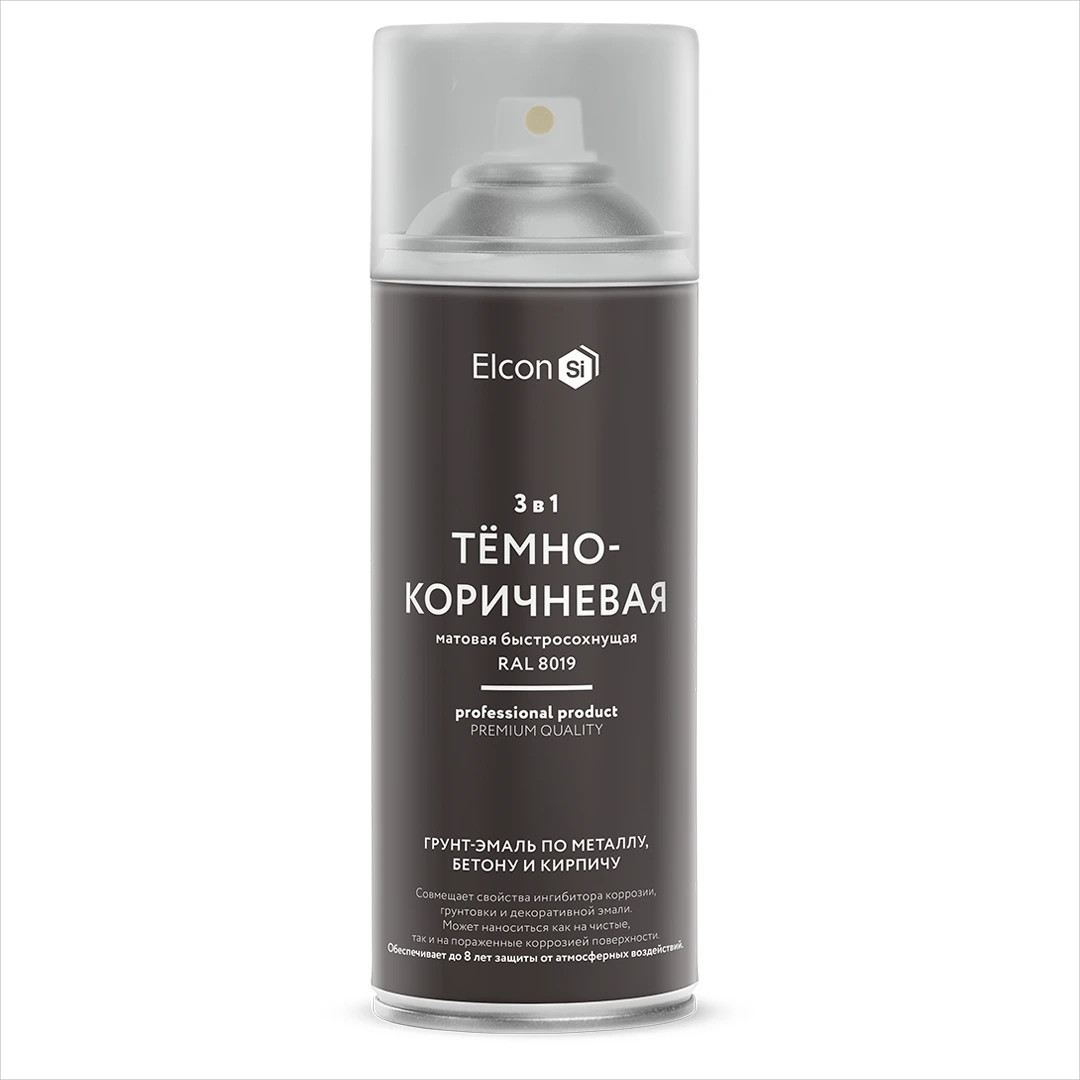 Купить Грунт-эмаль аэрозоль по ржавчине Elcon 3 в 1 матовая темно-коричневая RAL 8019 520 мл по лучшей цене с доставкой - интернет магазин №1 в России