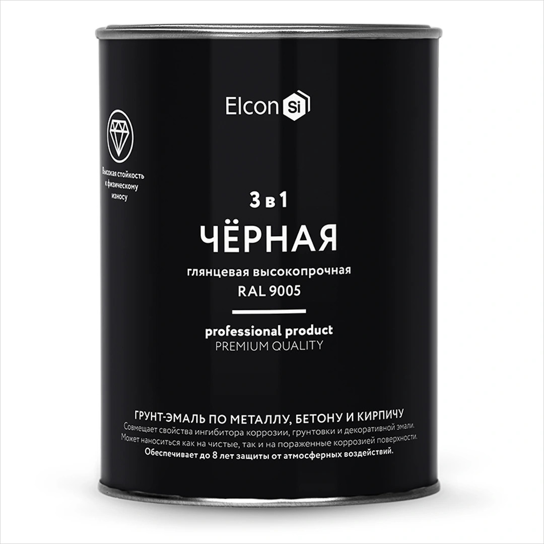 Купить Грунт-эмаль Elcon 3 в 1 глянцевая чёрная RAL 9005 0,8 кг по лучшей цене с доставкой - интернет магазин №1 в России