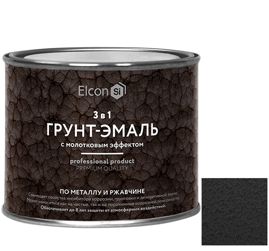 Купить Грунт-эмаль Elcon Smith 3 в 1 с молотковым эффектом чёрная 0,4 кг по лучшей цене с доставкой - интернет магазин №1 в России
