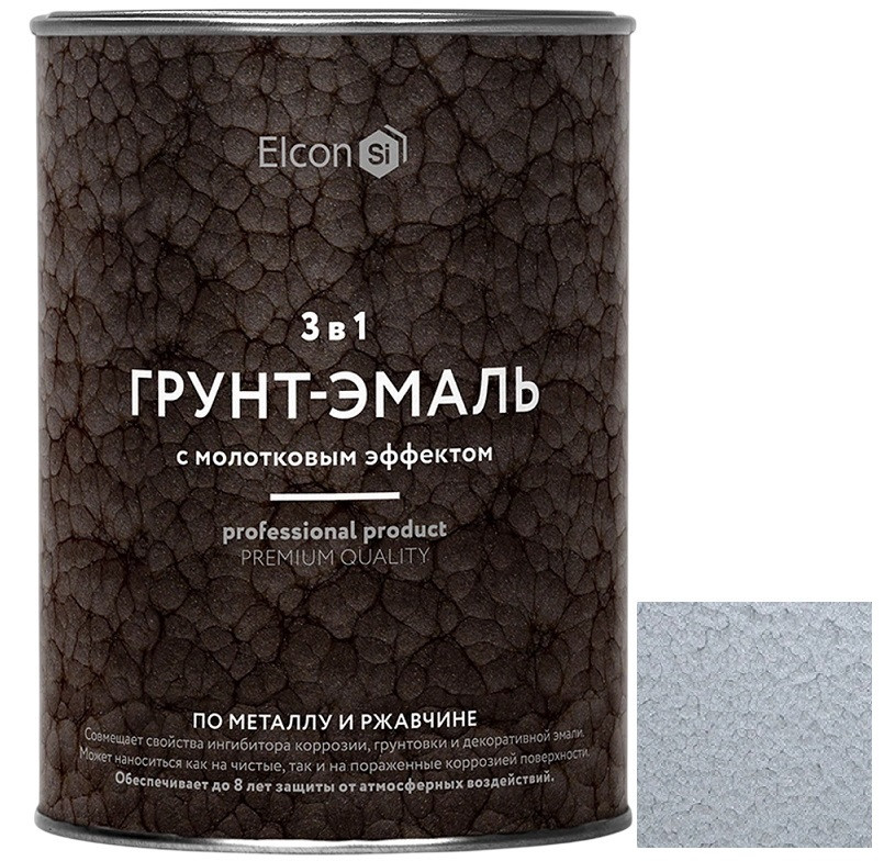 Купить Грунт-эмаль Elcon Smith 3 в 1 с молотковым эффектом серебро 0,8 кг по лучшей цене с доставкой - интернет магазин №1 в России