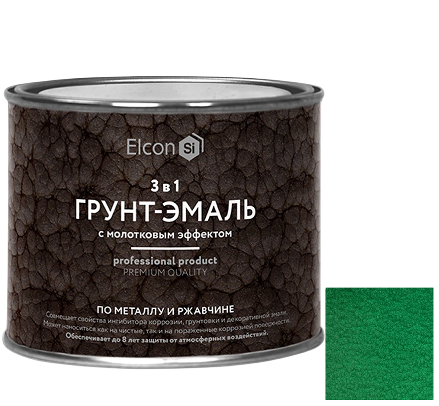 Купить Грунт-эмаль Elcon Smith 3 в 1 с молотковым эффектом зелёная 0,4 кг по лучшей цене с доставкой - интернет магазин №1 в России