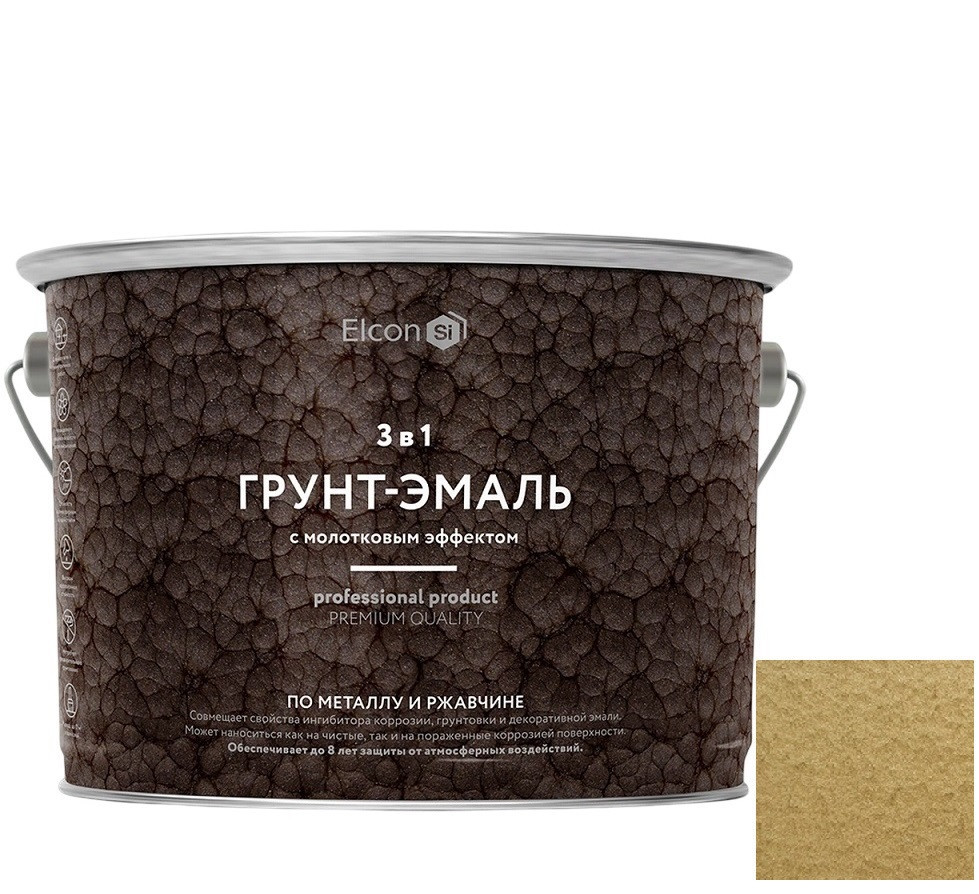 Купить Грунт-эмаль Elcon Smith 3 в 1 с молотковым эффектом золото 2 кг по лучшей цене с доставкой - интернет магазин №1 в России