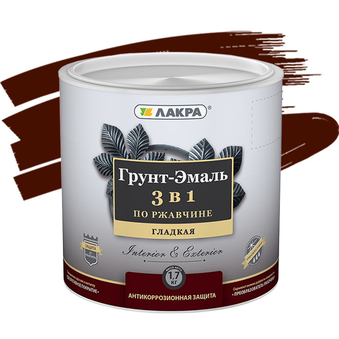 Купить Грунт-эмаль Лакра 3 в 1 по ржавчине красно-коричневая 1,7 кг по лучшей цене с доставкой - интернет магазин №1 в России