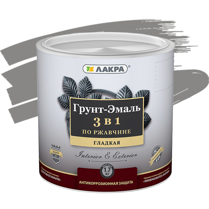 Купить Грунт-эмаль Лакра 3 в 1 по ржавчине серая 1,7 кг по лучшей цене с доставкой - интернет магазин №1 в России