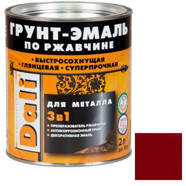 Купить Грунт-эмаль по ржавчине Dali 3 в 1 гладкая красная RAL 3001 2 л по лучшей цене с доставкой - интернет магазин №1 в России