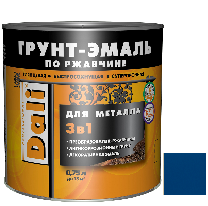 Купить Грунт-эмаль по ржавчине Dali 3 в 1 гладкая RAL 5005 синяя 0,75 л по лучшей цене с доставкой - интернет магазин №1 в России