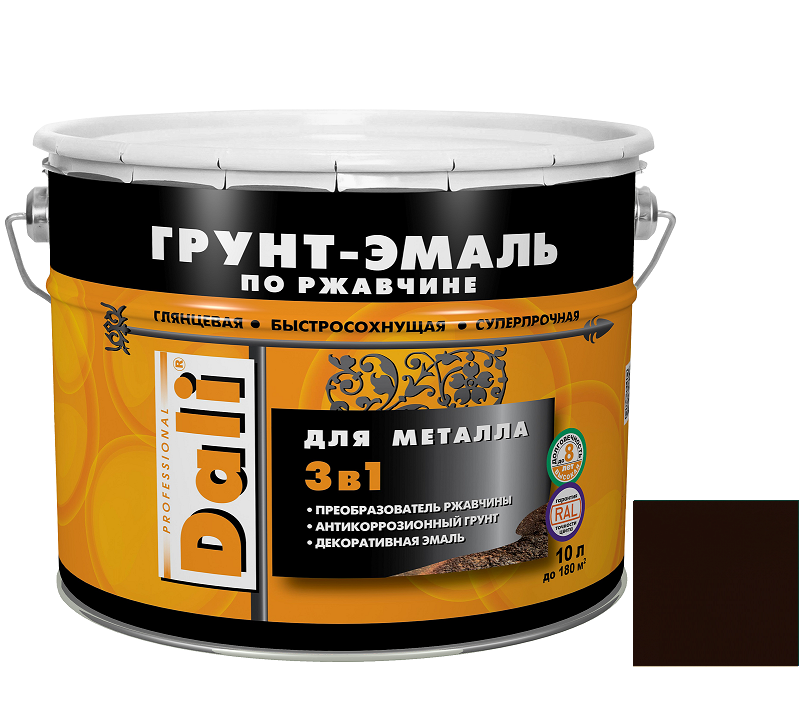 Купить Грунт-эмаль по ржавчине Dali 3 в 1 гладкая RAL 8017 коричневая 10 л по лучшей цене с доставкой - интернет магазин №1 в России