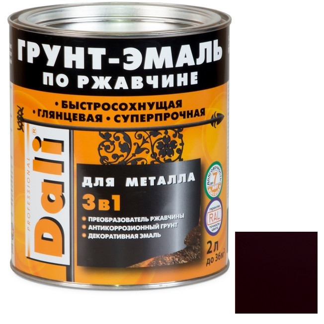 Купить Грунт-эмаль по ржавчине Dali 3 в 1 гладкая винно-красная RAL 3005 2 л по лучшей цене с доставкой - интернет магазин №1 в России
