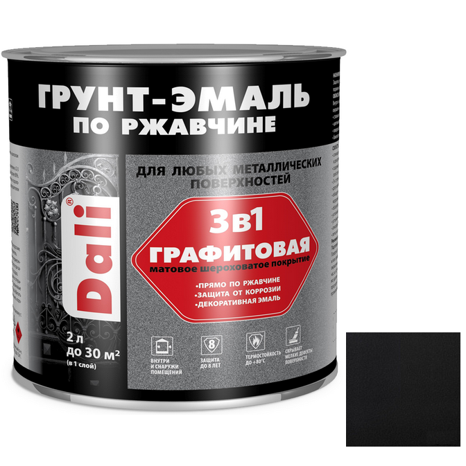 Купить Грунт-эмаль по ржавчине Dali 3 в 1 графитовая черная 2 л по лучшей цене с доставкой - интернет магазин №1 в России