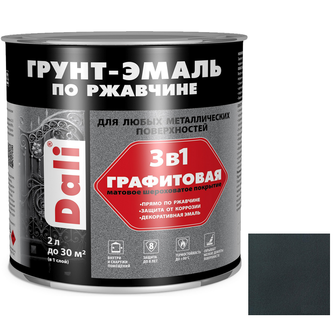 Купить Грунт-эмаль по ржавчине Dali 3 в 1 графитовая серо-синяя 2 л по лучшей цене с доставкой - интернет магазин №1 в России