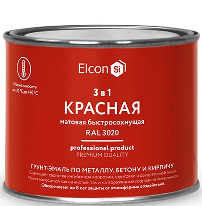 Купить Грунт-эмаль по ржавчине Elcon 3 в 1 матовая Ral 3020 красная 0,4 кг по лучшей цене с доставкой - интернет магазин №1 в России