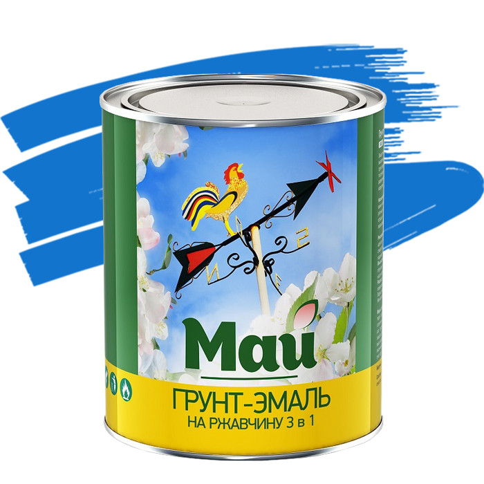 Купить Грунт-эмаль по ржавчине Май 3 в 1 голубая 1,9 кг по лучшей цене с доставкой - интернет магазин №1 в России
