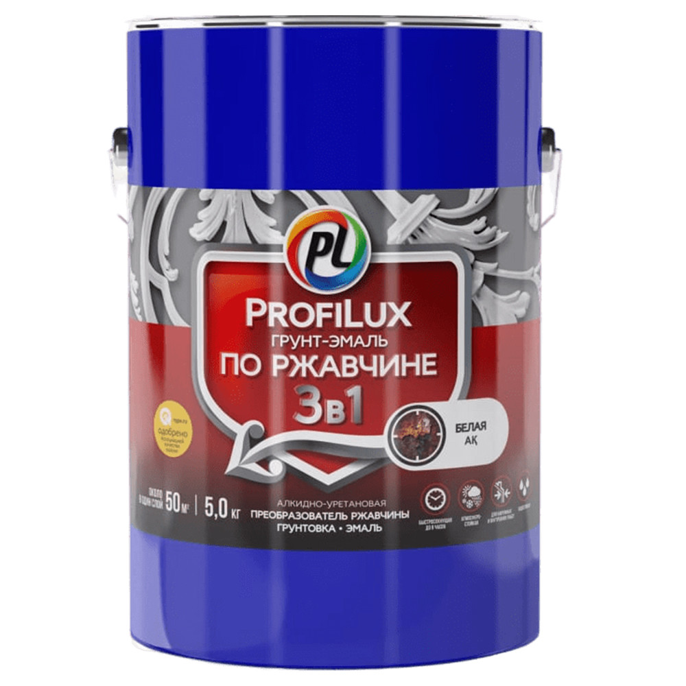 Купить Грунт-эмаль Profilux по ржавчине 3 в 1 полуматовая белая 5 кг по лучшей цене с доставкой - интернет магазин №1 в России