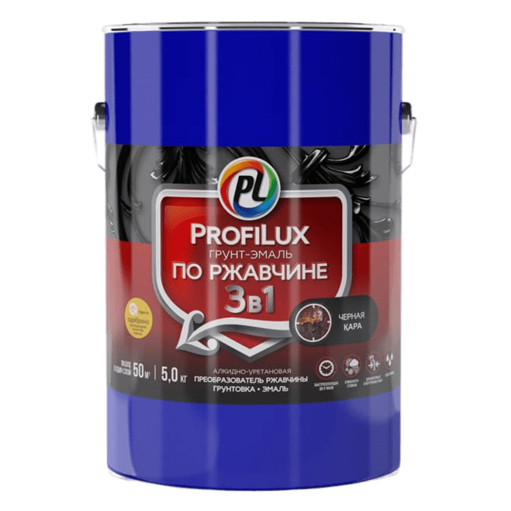 Купить Грунт-эмаль Profilux по ржавчине 3 в 1 полуматовая чёрная 5 кг по лучшей цене с доставкой - интернет магазин №1 в России
