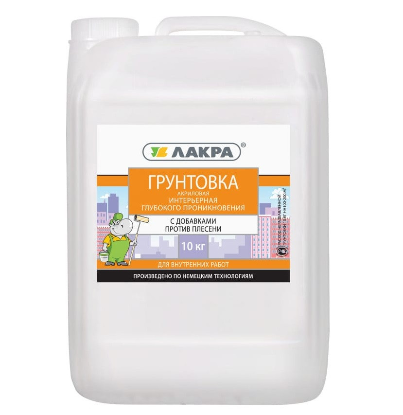 Купить Грунт интерьерный глубокого проникновения против плесени Лакра 10 кг по лучшей цене с доставкой - интернет магазин №1 в России
