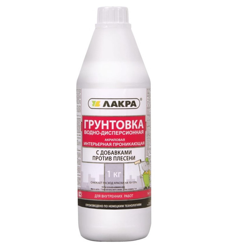 Купить Грунт интерьерный проникающий против плесени Лакра 1кг по лучшей цене с доставкой - интернет магазин №1 в России