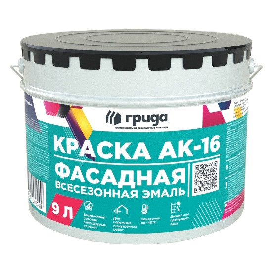 Купить Краска фасадная АК-16 всесезонная база С 9 л/12,6 кг по лучшей цене с доставкой - интернет магазин №1 в России