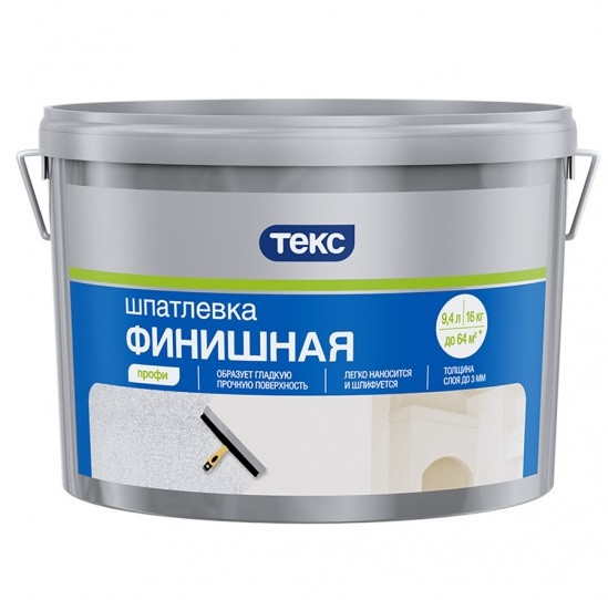 Купить Шпатлевка латексная финишная Текс Профи 16 кг по лучшей цене с доставкой - интернет магазин №1 в России