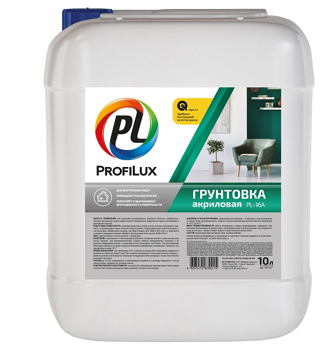 Купить Грунт акриловый Profilux PL-16A для внутренних работ 10 л по лучшей цене с доставкой - интернет магазин №1 в России