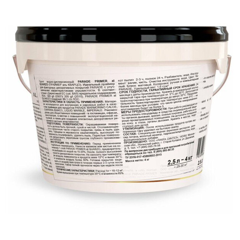 Купить Грунт Parade Primer al Quarzo для фактурных покрытий белый 2,5 л по лучшей цене с доставкой - интернет магазин №1 в России