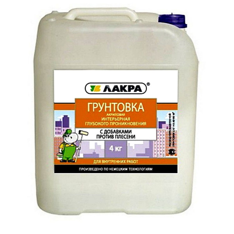 Купить Грунтовка интерьерная глубокого проникновения Лакра 4 кг по лучшей цене с доставкой - интернет магазин №1 в России