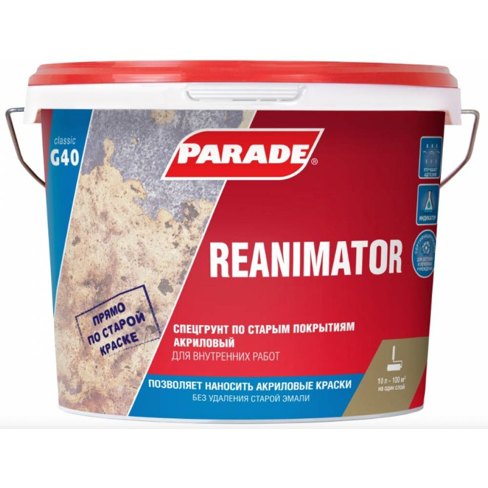 Купить Спецгрунт Parade Reanimator G40 по старым покрытиям 10 л по лучшей цене с доставкой - интернет магазин №1 в России