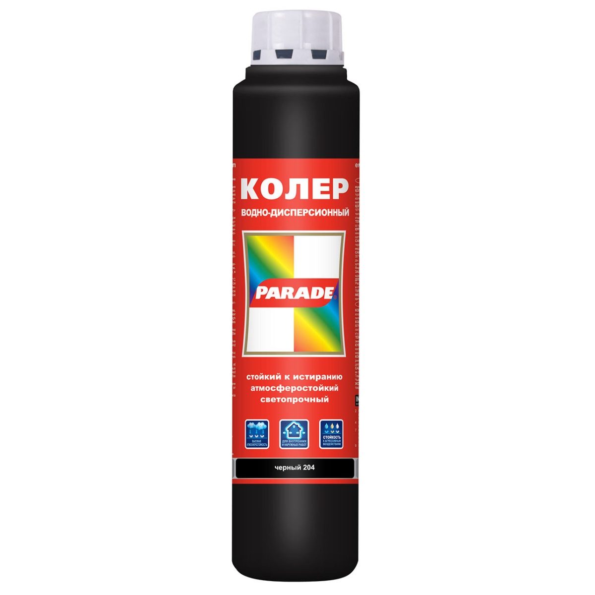 Купить Колер водно-дисперсионный Parade Classic №204 черный 0,75 л по лучшей цене с доставкой - интернет магазин №1 в России