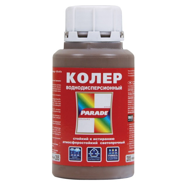 Купить Колер водно-дисперсионный Parade Classic №205 коричневый 0,25 л по лучшей цене с доставкой - интернет магазин №1 в России