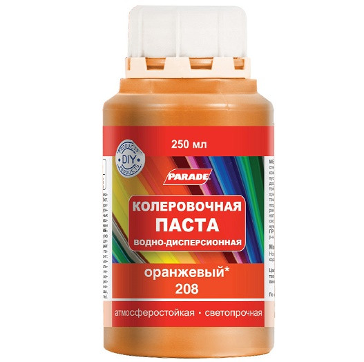 Купить Колер водно-дисперсионный Parade Classic №208 оранжевый 0,25 л по лучшей цене с доставкой - интернет магазин №1 в России