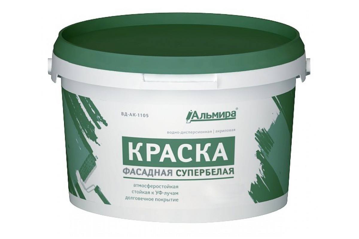 Купить Альмира Краска Фасадная супербелая люкс 14 кг 00-00000382 по лучшей цене с доставкой - интернет магазин №1 в России