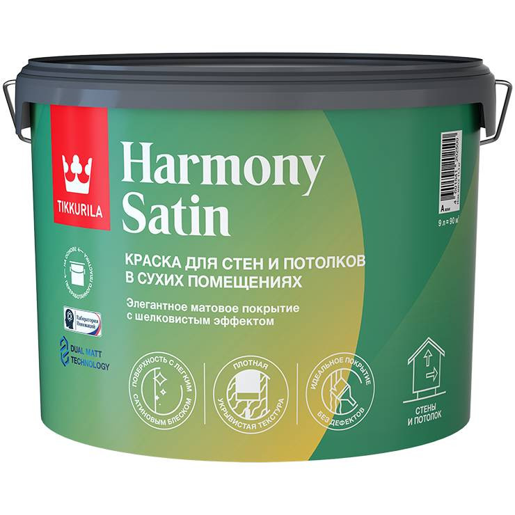 Купить Краска акриловая для стен и потолков Tikkurila Harmony Satin Joker 700014037 матовая 1 класс база А 9 л по лучшей цене с доставкой - интернет магазин №1 в России
