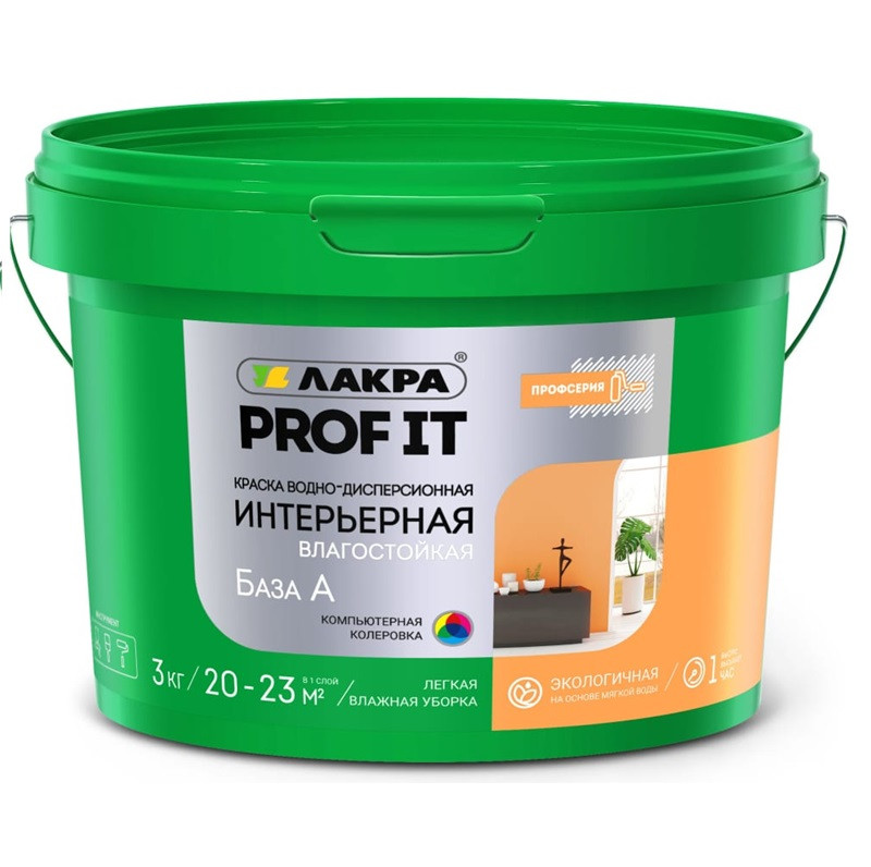 Купить Краска акриловая интерьерная Лакра Prof it База А влагостойкая 3 кг по лучшей цене с доставкой - интернет магазин №1 в России