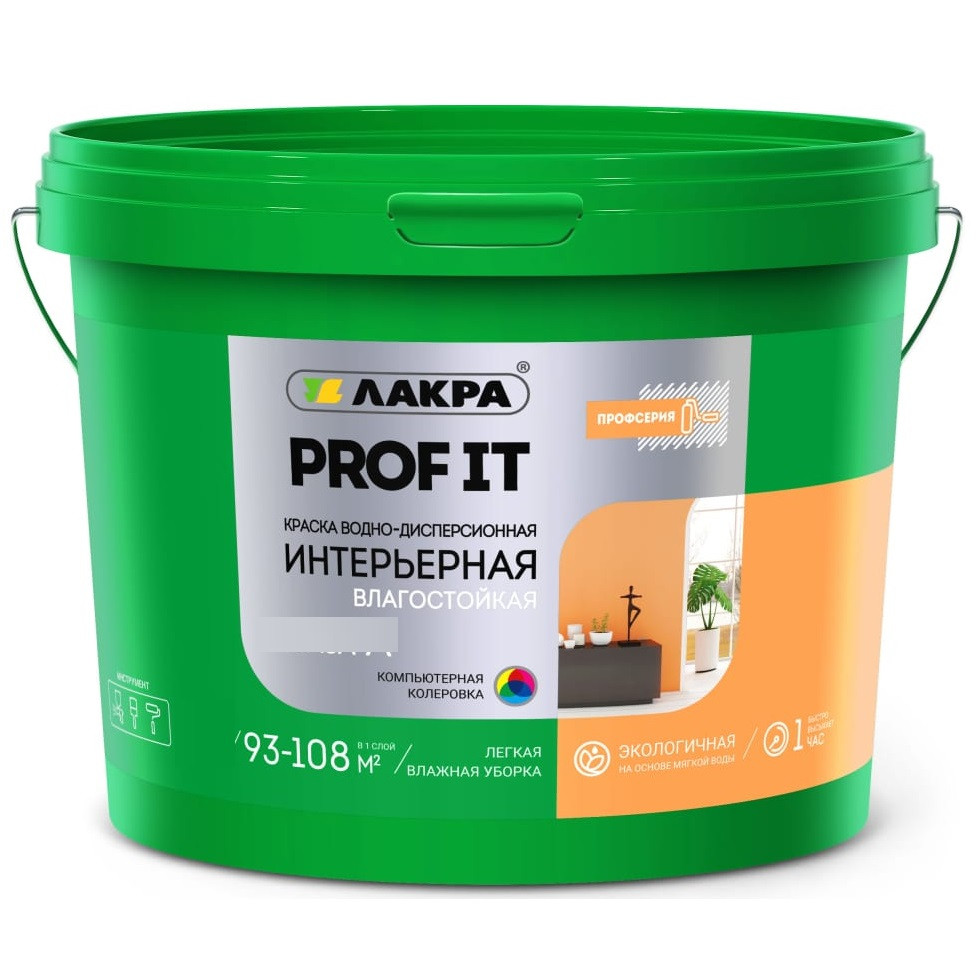 Купить Краска акриловая интерьерная Лакра Prof it База С влагостойкая 13 кг по лучшей цене с доставкой - интернет магазин №1 в России