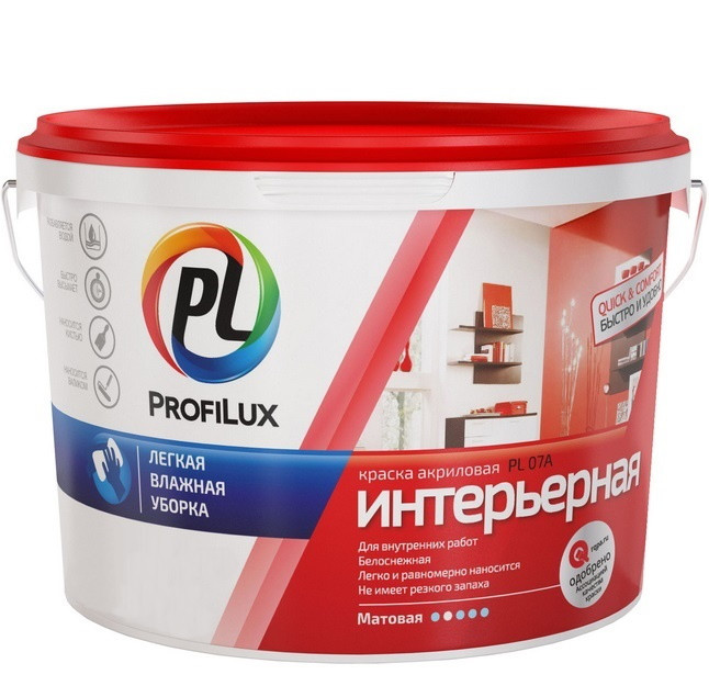 Купить Краска акриловая Profilux PL-07A интерьерная супербелая 14 кг по лучшей цене с доставкой - интернет магазин №1 в России