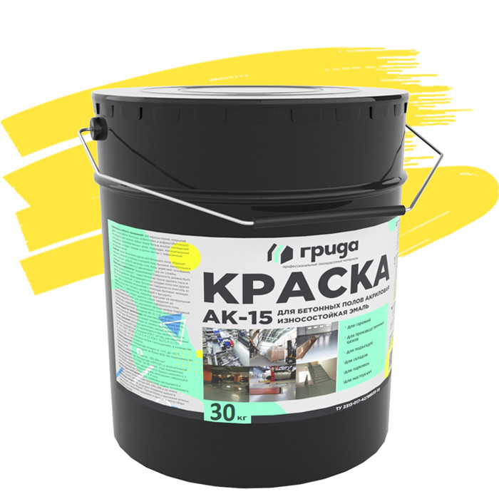 Купить Краска для бетонных полов Грида АК-15 износостойкая желтая 30 кг по лучшей цене с доставкой - интернет магазин №1 в России