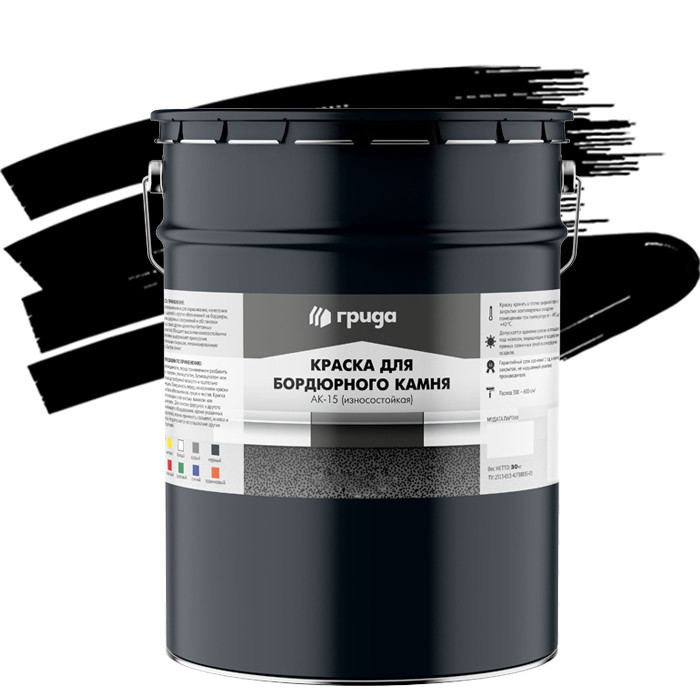 Купить Краска для бордюрного камня Грида АК-15 износостойкая черная 30 кг по лучшей цене с доставкой - интернет магазин №1 в России