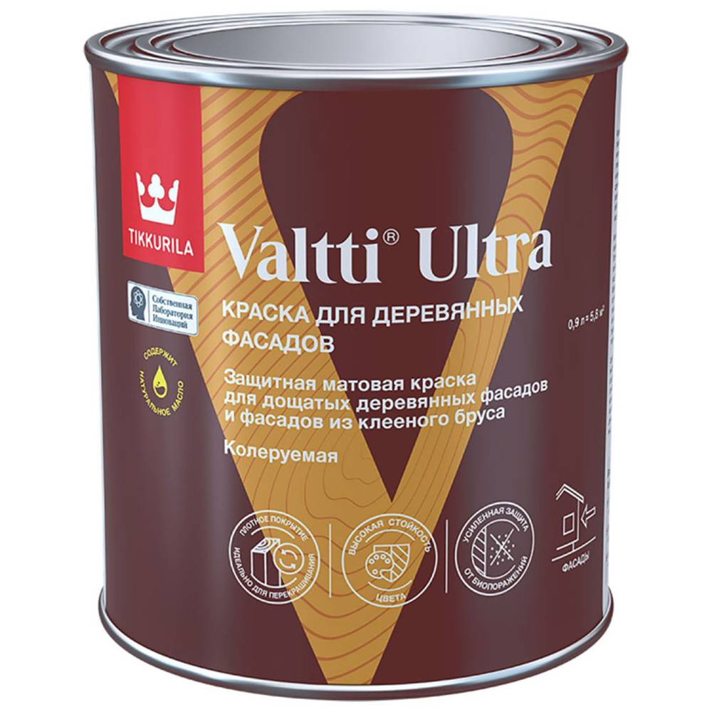 Купить Краска для деревянных фасадов Tikkurila Valtti Ultra 700014131 матовая база С 0,9л по лучшей цене с доставкой - интернет магазин №1 в России