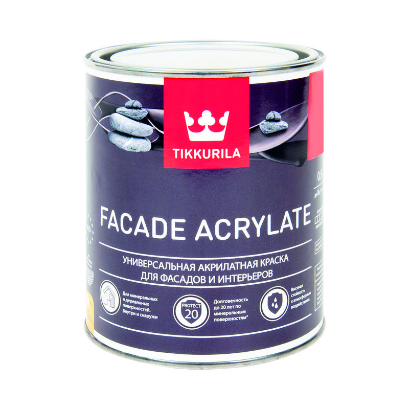 Купить Краска для колеровки фасадная Tikkurila Facade Acrylate прозрачная 0,9 л по лучшей цене с доставкой - интернет магазин №1 в России