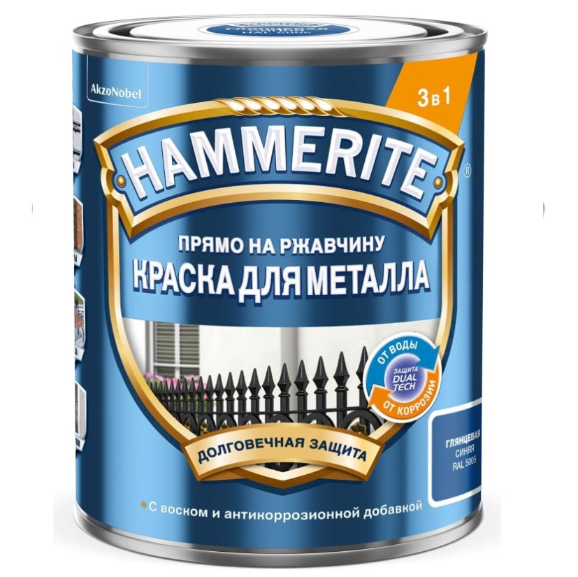 Купить Краска для металлических поверхностей Hammerite гладкая RAL 5005 синяя 5 л по лучшей цене с доставкой - интернет магазин №1 в России