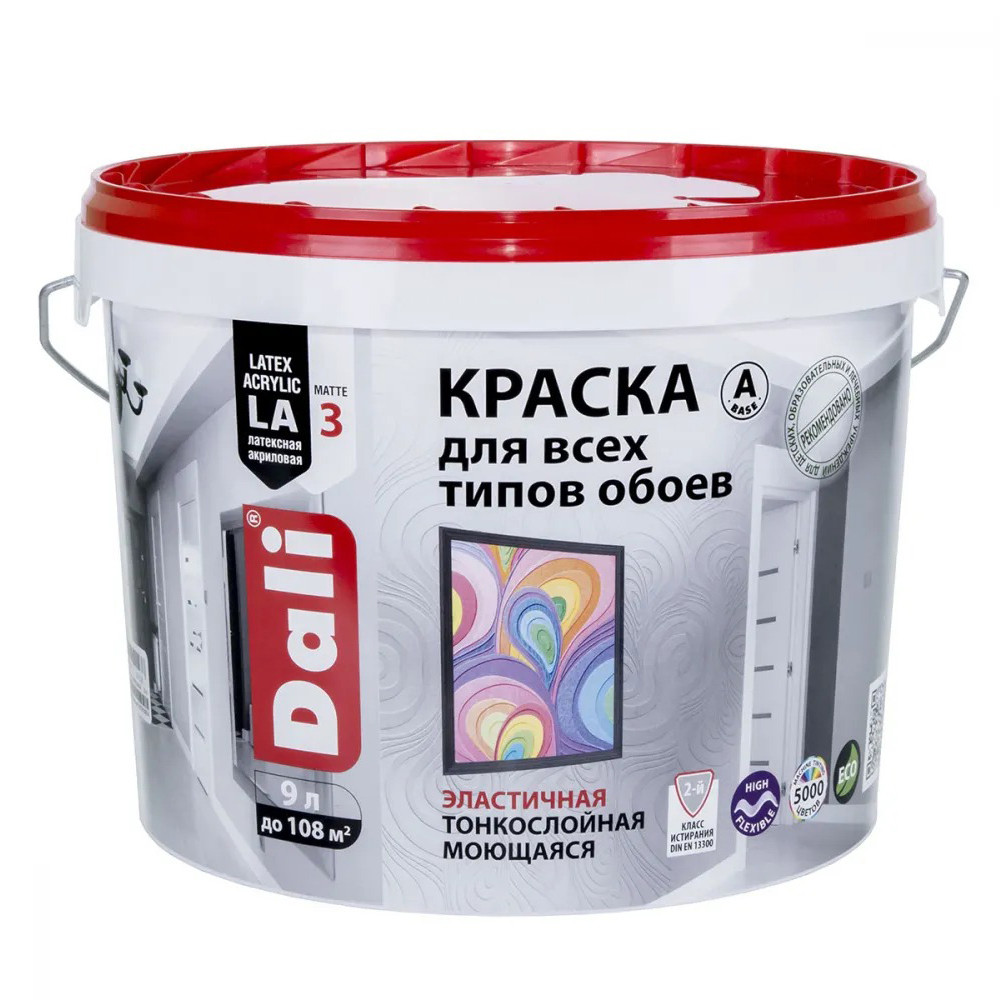 Купить Краска для обоев акриловая Dali 20123 износостойкая база А 9 л по лучшей цене с доставкой - интернет магазин №1 в России