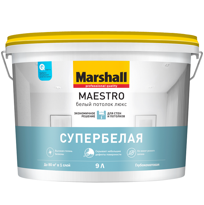 Купить Краска для потолка Marshall Maestro Белый потолок Люкс глубокоматовая белая 9 л по лучшей цене с доставкой - интернет магазин №1 в России
